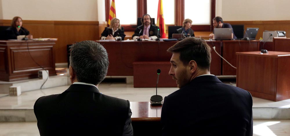 أصدرت محكمة أسبانية حكماً بالسجن لمدة 21 شهراً بحق مهاجم برشلونة الأرجنتيني ليونيل ميسي ووالده بتهمة التهرب من الضرائب وغرمته بمبلغ 7ر3 ملايين يورو (1ر4 ملايين دولار)، لكن يتوقع أن يتم وقف تنفيذ العقوبة كما هو شائع في أسبانيا بالنسبة للجرائم التي تبلغ عقوبتها اقل من عامين.