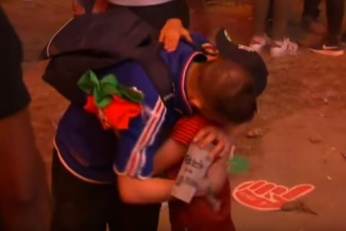 وتُظهر الصور التي نشرتها وسائل الإعلام عقب نهائي اليورو، وفوز البرتغال على أصحاب الأرض، دهشة واستغراب المشجع الفرنسي مما فعله الطفل البرتغالي، ومواساته، قبل أن يقوم باحتضانه بشدة.