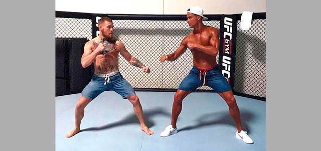 وشارك رونالدو، الذي قاد البرتغال لتحقيق اللقب الأول لها في بطولة كأس أمم أوروبا هذا العام، بعد أن توج في وقت سابق من العام نفسه ببطولة دوري أبطال أوروبا مع ريال مدريد، أول من أمس، الملاكم الإيرلندي كونور ماكجريجور نجم «يو إف سي» في تدريباته أمس بمدينة لاس فيغاس الأميركية.