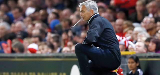 مدرب مان يونايتد مورينيو قاد أول مباراة في «أولد ترافورد». رويترز