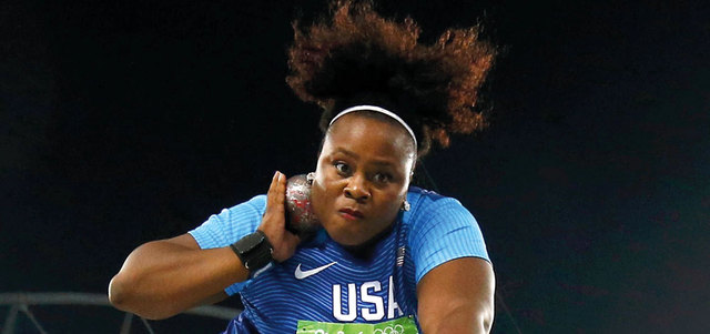 الأميركية ميشال كارتر خلال رمي الكرة الحديدية. إي.بي.إيه