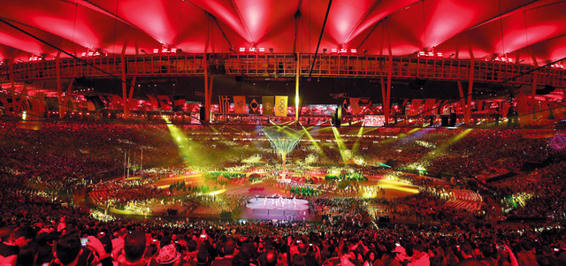 شهد حفل ختام الألعاب الأولى في اميركا اللاتينية كرنفالاً عملاقاً اقيم في ملعب ماراكانا الأسطوري في مدينة ريو دي جانيرو البرازيلية، امتزجت فيه السامبا مع الألعاب النارية.