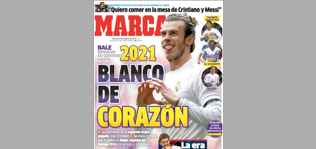 يقضي العقد الجديد، للويلزي غاريث بيل، مع نادي ريال مدريد الإسباني، أن يحصل اللاعب على راتب سنوي بنحو 10 ملايين يورو صافٍ من الضرائب، بحيث سيصبح ثاني أعلى لاعبي ريال مدريد أجراً بعد البرتغالي رونالدو، ومتقدماً على نجم الفريق، سيرجيو راموس. وكافأت إدارة الريال اللاعب بالعقد الكبير، بالنظر إلى المستوى المميز الذي قدمه، بجانب تأمين بقائه حتى عام 2021، وإبعاده عن مطاردة أكبر الأندية الأوروبية.