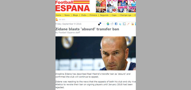 وجه مدرب ريال مدريد، الفرنسي زين الدين زيدان، انتقاداً شديداً لحظر الانتقالات الذي ثبته الاتحاد الدولي لكرة القدم «فيفا»، عقب رفضه استئناف ريال مدريد وكذلك أتلتيكو مدريد ضد العقوبة الموقعة عليهما منذ أشهر طويلة بخصوص انتقالات اللاعبين لفترتين قادمتين. وقال زيدان إن «فيفا» لا يراعي مصالح الأندية، خصوصاً أن ابنيه من بين المشمولين في تقرير «فيفا» لتبرير الحظر، بدعوى عدم قانونية تعاقد النادي مع القاصرين.