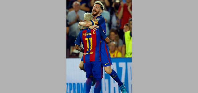 قاد الثلاثي، ليونيل ميسي ونيمار ولويس سواريز، فريق برشلونة إلى سحق سلتيك الاسكتلندي 7-صفر، وتحقيق بداية مثالية في دوري ابطال أوروبا لكرة القدم، كما لقّن بايرن ميونيخ الالماني الوافد الجديد روستوف الروسي درساً بخماسية، فيما انتهت قمة باريس سان جرمان الفرنسي وأرسنال الانجليزي بالتعادل 1-1. وكرر برشلونة ما صنعه قبل ثلاث سنوات، عندما سحق سلتيك في دور المجموعات 6-1 بثلاثية لنيمار، لكنه هذه المرة حقق أكبر فوز له في دوري الأبطال.