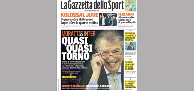 عنونت صحيفة «لاغازيتا ديللو سبورت» الإيطالية، غلافها أمس: «مواتي والإنتر.. ربما أعود»، في إشارة إلى حاجة نادي إنتر ميلان إلى رئيسه السابق موراتي، الذي سبق أن قاده للألقاب، وقال العجوز الإيطالي للصحيفة: «طلبوني للعودة مرة أخرى إلى الرئاسة، وهو شرف لي وامتياز كبير، إذ أفتقد حماسة المشجعين»، مؤكداً أنه «ربما يعود لقيادة النيراتزوري». دبي ــ الإمارات اليوم