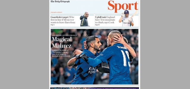 قدّم الجزائري رياض محرز، يوم أول من أمس، أمام فريق كوبنهاغن الدنماركي واحدة من اجمل المباريات لفريق ليستر، بعد أن سجل هدف الفوز بطريقة جعلت وسائل الاعلام الانجليزية تتغنى بموهبته، فأطلقت عليه «تيليغراف» لقب الساحر، بالنظر إلى الطريقة المميزة التي سجل بها هدف النقطة التاسعة. «تيليغراف»