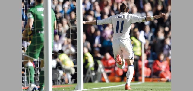 واحتفل الجناح الويلزي غاريث بيل بتجديد عقده مع الفريق الملكي خلال الاسبوع الحالي إلى عام 2022، بتسجيله ثنائية في الدقيقتين 38 و45، ليضع فريقه على الطريق الصحيح.