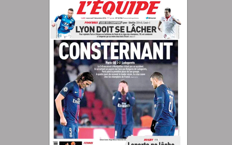 بات المسؤولون عن نادي باريس سان جيرمان الفرنسي يشعرون بالقلق من تواضع نتائج الفريق، أخيراً، فبعد الخسارة الموجعة من فريق مونبلييه في الدوري الفرنسي السبت الماضي، تلقى الفريق تعادلاً مهيناً من لودغريتس البلغاري المتواضع، أول من أمس، بالأبطال.