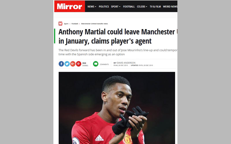 «بات رحيل مهاجم فريق مانشستر يونايتد مارسيال، في الانتقالات الشتوية المقبلة، متوقعاً بقوة في ظل الحديث المتزايد عن إمكانية حمل اللاعب قميص إشبيلية الاسباني، خصوصاً أنه لا يحصل على فرصة للعب كثيراً».