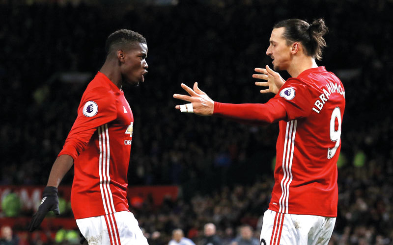 إبراهيموفيتش يشكل ثنائياً قوياً مع بوغبا في مانشستر يونايتد. رويترز