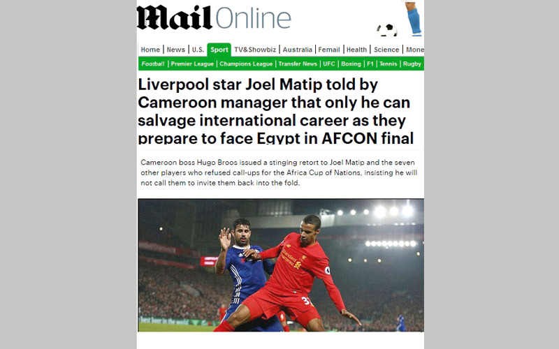 قال مدرب منتخب الكاميرون، البلجيكي هوغو بروس، إن ما يقدمه منتخب الكاميرون في بطولة إفريقيا الحالية المقامة في الغابون، وبعد وصوله النهائي يثبت أن النجوم السبعة المحترفين في أوروبا الذين رفضوا اللعب مع منتخبهم كانوا على خطأ وسيندمون على قرارهم. «ديلي ميل»