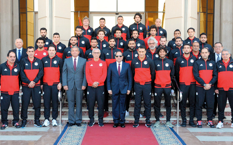 استقبل الرئيس المصري عبدالفتاح السيسي، أمس، بعثة منتخب مصر لكرة القدم لدى وصولها إلى مطار القاهرة الدولي، عقب إحراز المركز الثاني في بطولة كأس الأمم الإفريقية بالغابون. وذكر التلفزيون المصري على موقعه الإلكتروني، أمس، أن السيسي أشاد بالفريق وأدائه في البطولة، وأكد للاعبين أنهم أسعدوا جميع المصريين، كما قدم لهم الشكر على ما قدموه في البطولة. وشهدت مراسم الاستقبال التقاط صورة تذكارية تجمع الرئيس المصري بأفراد الجهاز الفني واللاعبين وأفراد البعثة العائدة من الغابون.
