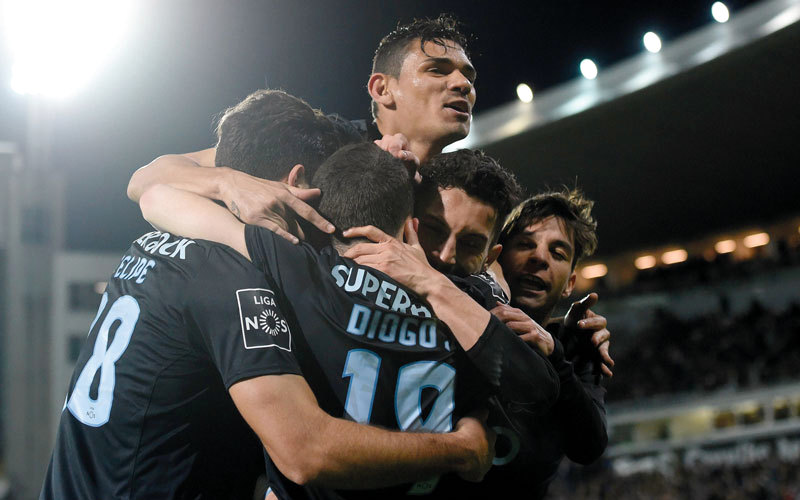 نجوم بورتو يحتفلون بالفوز على غيمارايش. أ.ف.ب