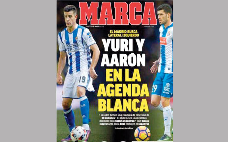 وضع الريال على أجندة الانتقالات الصيفية المقبلة، اسمين جديدين، هما لاعبا إسبانيول، مارتن أرون ويوري، حتى يكونا بديلين محتملين للبرتغاليين كوينتراو وبيبي، بعد أن تأكد بشكل شبه رسمي رحيل كوينتراو، وبشكل كبير بيبي. «ماركا»