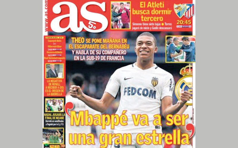 ألقت صحيفة «أس» الإسبانية المقربة من نادي ريال مدريد الضوء على الموهبة الكبيرة التي يعكسها النجم الصاعد بقوة في فريق موناكو الفرنسي، مبابي، الذي بات على رادار ريال مدريد بقوة رغم أنه قد يكلف خزينة الملكي الكثير. «أس»