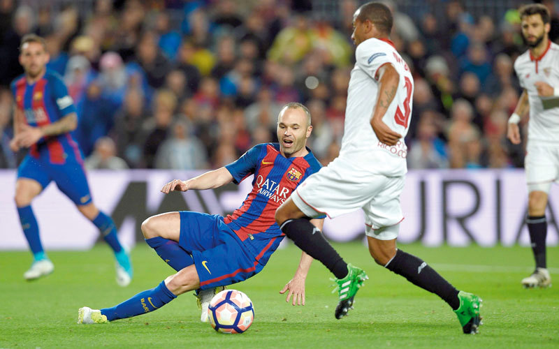 إنييستا لعب مباراة إشبيلية بالكامل دون تبديل. أ.ف.ب