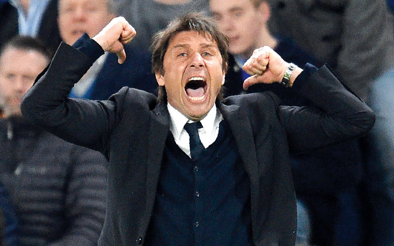 أنطونيو كونتي بات قريباً جداً من التتويج مع تشلسي في سنته الأولى. أ.ف.ب