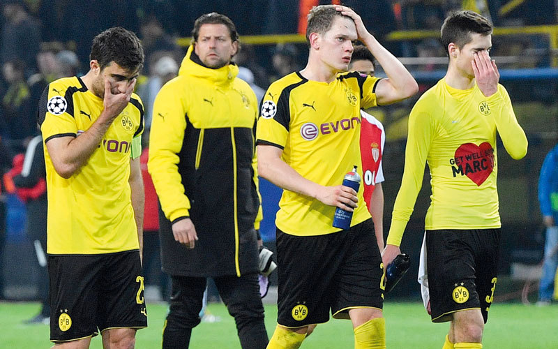 يجد فريق بروسيا دورتموند الألماني نفسه، اليوم، في مهمة شاقة من أجل الاستمرار في المغامرة الأوروبية، وبلوغ نصف نهائي دوري الأبطال، بعد أسبوع من تفجيرات استهدفت حافلته وأصابت مدافعه الإسباني، مارك بارترا، بجروح، وخلفت لحظات من الرعب لدى لاعبيه، ثم تلقيه هزيمة قاسية على ملعبه من فريق موناكو الفرنسي في ذهاب ربع النهائي 3-2.