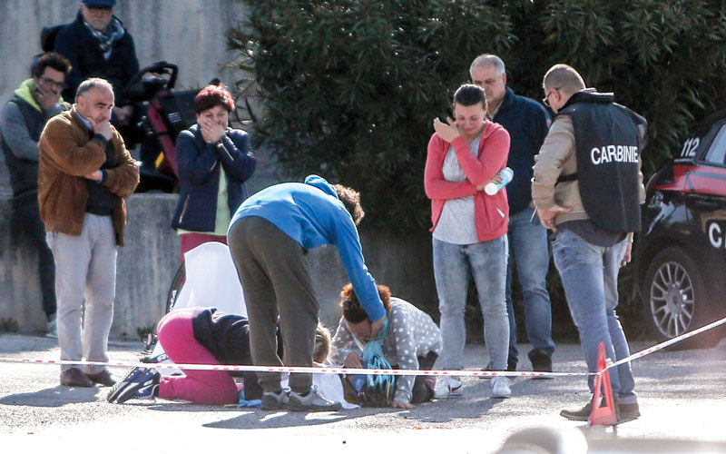سكاربوني ممداً على الأرض بعد أن صدمته شاحنة وهو يتدرب بدراجته. أ.ف.ب