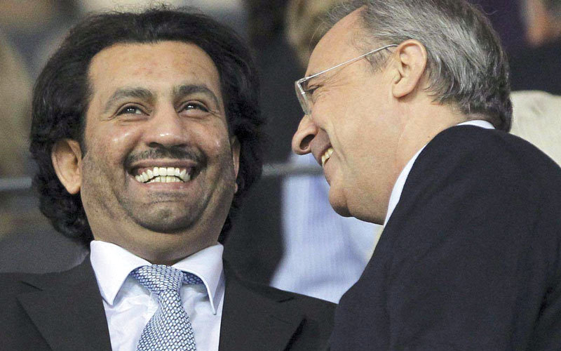 عبدالله آل ثاني في لقاء سابق مع رئيس ريال مدريد بيريز. الإمارات اليوم
