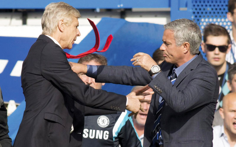 علاقة متوترة جمعت فينغر ومورينيو حين كان البرتغالي مدرباً سابقاً لتشلسي. الإمارات اليوم