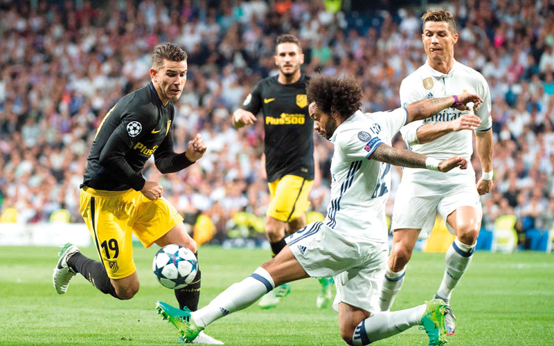 شعر فريق أتلتيكو مدريد، من لاعبين إلى مدرب وجمهور، بحجم الإهانة التي وجهها لهم ريال مدريد في ذهاب نصف نهائي أبطال أوروبا، حينما هزمهم مجدداً، بـ«هاتريك» رونالدو، ليقطع الملكي أكثر من نصف الطريق إلى كارديف، حيث الموعد مع نهائي المسابقة، في استاد العاصمة الويلزية بداية يونيو المقبل. لكن ومنذ الساعات القليلة التي تلت المباراة، وحتى قبل انطلاق الفصل الثاني من المواجهة، حينما يستضيف أتلتيكو نظيره الريال في استاد فيسانتي كالديرون في لقاء الإياب اليوم، يعتقد المدرب الأرجنتيني سيميوني، ولاعبوه أنهم قادرون على تحقيق «الريمونتادا» (العودة في النتيجة والتأهل)، رغم أنها أمر شبه مستحيل، خصوصاً أن الريال ظل يسجل في كل المباريات الـ60 الأخيرة بكل المسابقات. وتلقي «الإمارات اليوم» بالضوء على الأسباب التي تدفع أتلتيكو إلى إظهار هذه القناعة، ورفع هذا التحدي أمام الغريم والجار المدريدي.
