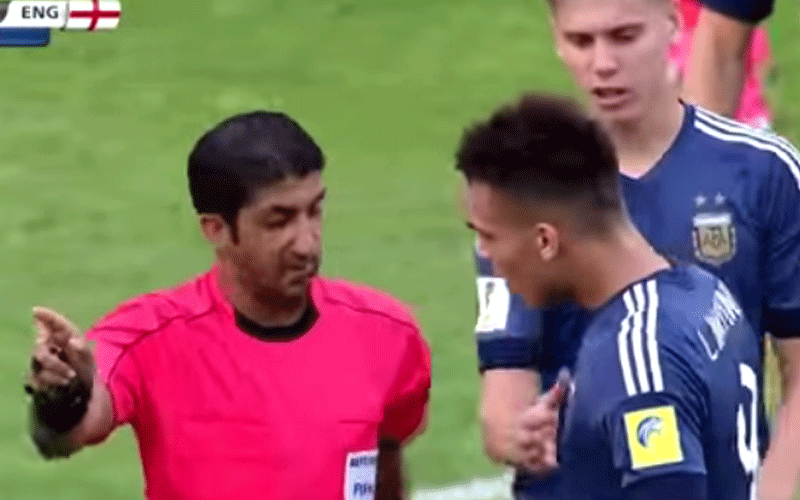 وقام بمشاهدة إعادة للعبة بالفيديو، وتبين قيام لاعب الأرجنتين مارتينز بالاعتداء عليه ليقوم بطرده من الملعب.