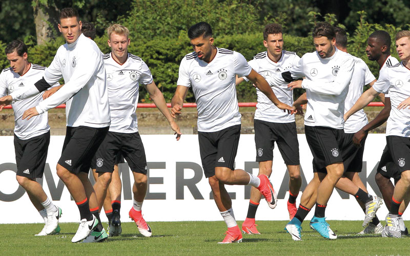 وآثر المدرب الألماني يواكيم لوف المشاركة بمنتخب من الصف الثاني، طعَّمه بثلاثة لاعبين فقط من المتوجين بكأس العالم 2014 في البرازيل هم المدافعان ماتياس غينتر وشكودران مصطفي والمهاجم يوليان دراكسلر. ولجأ لوف إلى تجارب عدة وتبديلات خلال المباريات الاستعدادية للبطولة، لكنه لم يكشف تشكيلته باستثناء الحارس بيرند لينو (باير ليفركوزن).