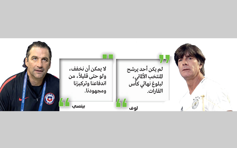 وإذا كان الألمان يبحثون عن التجديد، وعن جيل جديد قادر على خلافة أبطال مونديال 2014، الذين سيعود معظمهم إلى تشكيلة روسيا 2018، فإن المنتخب التشيلي يسعى لتأكيد أنه أصبح من اللاعبين الكبار على الساحة العالمية.
