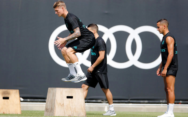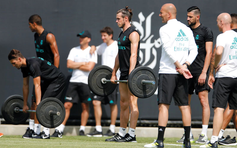 ذكر الموقع الرسمي لنادي ريال مدريد، أمس، أن الفريق الملكي يتدرب على فترتين صباحية ومسائية بمدينة لوس أنجلوس، من أجل رفع معدلات اللياقة البدنية لدى اللاعبين، لاسيما أن المدرب الفرنسي زين الدين زيدان طلب من المعد البدني بينتوس مضاعفة التدريبات البدنية في أول 10 أيام من أجل الوصول إلى أعلى درجات الجاهزية قبل خوض المباريات الودية.