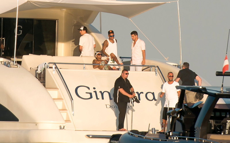 شوهد النجم البرازيلي نيمار، المنتقل إلى باريس سان جرمان الفرنسي في صفقة قياسية، برفقة عدد من أصدقائه على شاطئ سان تروبيه، في جنوب فرنسا، أول من أمس، من قبل مصور لوكالة «فرانس برس».وينتظر نيمار وصول بطاقته الدولية، للمشاركة مع سان جرمان، بعد أن انتقل إلى صفوفه الخميس من برشلونة الإسباني، في أغلى صفقة كرة قدم في العالم، بلغت 222 مليون يورو (264 مليون دولار). وأمضى نيمار (25 عاماً) خمس ساعات على شاطئ «لا باغاتيل»، قبل أن يستقل قارباً مطاطياً مع سبعة من أصدقائه ومرافقيه، وسار خلفهم قارب آخر، يحمل 10 أشخاص آخرين.