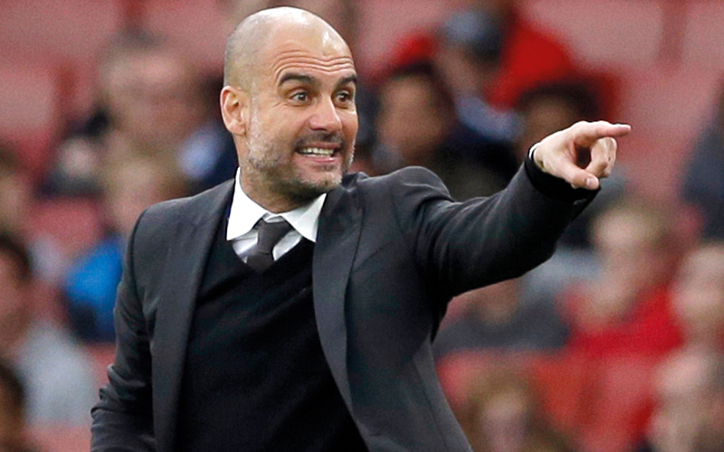غوارديولا رتب أوراق الفريق بشكل مميز استعدادا للتحدي الإنجليزي. أ.ب