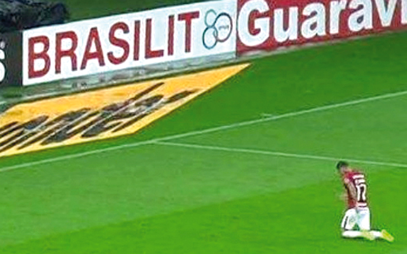 اللاعب البرازيلي يقطع الملعب زحفاً. الإمارات اليوم