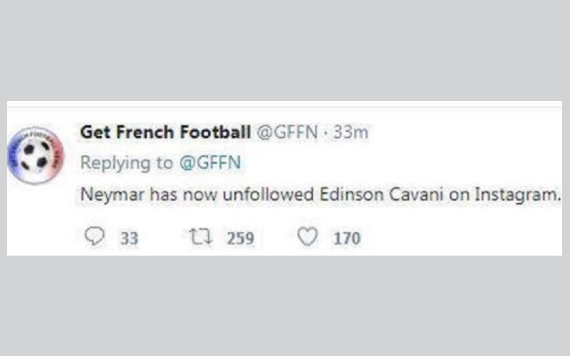 تواصلت ردود الأفعال العالمية على الموقف الذي حدث وتكرر للمرة الثانية عقب رفض اللاعب الأرجواني كافاني، السماح للبرازيلي نيمار، تسديد ركلة الجزاء التي حصل عليه فريق باريس سان جيرمان في مباراته امام ليون بالدوري الفرنسي، والتي تباعتها ردود أفعال كثيرة مثلما ذكر موقع يورو سبورت، إذ أكد الموقع أن اللاعب الأرجواني غادر بعد انتهاء المباراة مباشرة ولم يستغرق سوى 20 دقيقة حتى ترك ملعب المباراة وغادر من الباب الخلفي للإستاد بمفرده بعيداً عن أعين الصحافة والاعلام، بينما كان عقاب البرازيلي نيمار، للاعب بحذفه من حسابه الرسمي على إنستغرام.