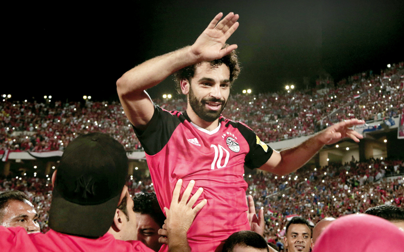نجم ليفربول الإنجليزي محمد صلاح تألق مع المنتخب المصري وقاده إلى المونديال. أ.ب