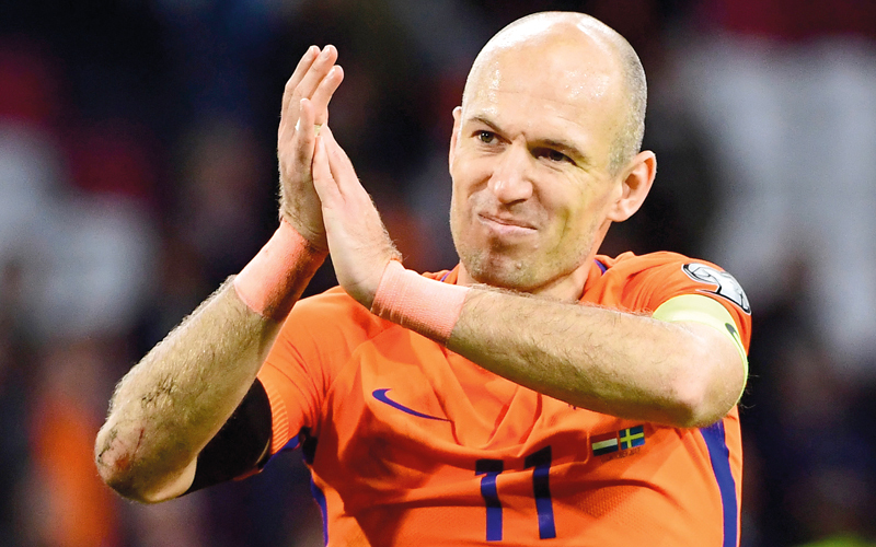 أعلن قائد منتخب هولندا لكرة القدم اريين روبن اعتزاله اللعب دولياً، بعد الفشل في التأهل الى نهائيات مونديال روسيا 2018. وفازت هولندا على السويد بهدفين لروبن أول من أمس، في امستردام في الجولة الأخيرة من منافسات المجموعة الأوروبية الأولى، لكنها حلت ثالثة بفارق الأهداف عن السويد التي ضمنت خوض الملحق، علماً ان فرنسا حجزت بطاقة المجموعة مباشرة الى النهائيات. وقال روبن في تصريحات صحافية: «14 عاماً، تبقى رائعة»، مضيفاً «سأتذكر دائماً كأس العالم 2010 و2014، إنهما أفضل ذكرياتي».