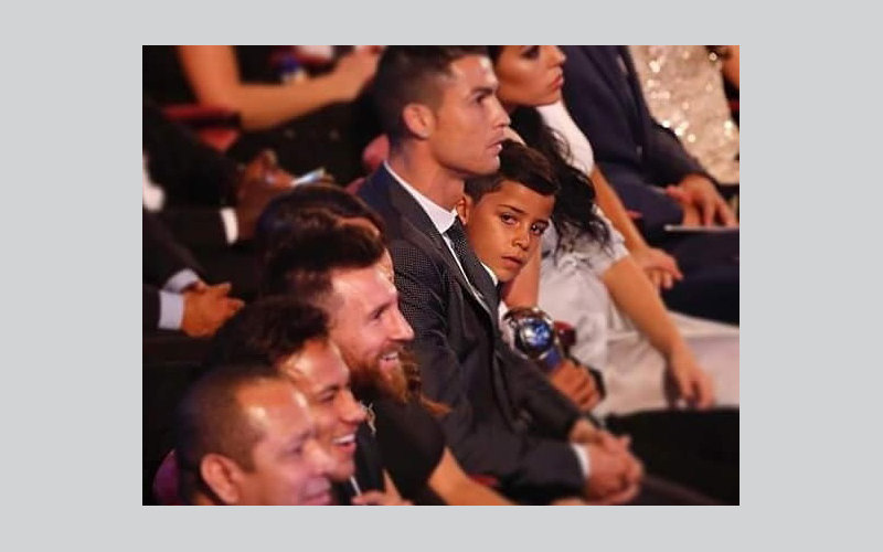 وذكرت صحيفة "ديلي ميل" البريطانية أن من الأمور اللافتة، قيام النجم البرتغالي رونالدو، بتقديم التحية لليونيل ميسي قبل إعلان الجوائز، وكان برفقته ابنه "رونالدو جونيور"، وذكرت أن الابن الصغير قال لميسي: أبي أفضل منك، فبادل ميسي الصغير، التحية. وظهر الصغير في صورة جانبية، وهو يرمق ميسي بنظرة حادة خلال الحفل. لكن الغريب أن رونالدو الصغير من أشد المعجبين بليونيل ميسي، حتى أنه مرة فضله على والده، وكان رونالدو من كشف ذلك من قبل.
