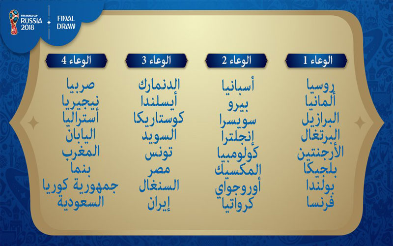التصنيف الأول: روسيا – ألمانيا – البرازيل – الأرجنتين – البرتغال – بولندا – فرنسا – بلجيكا
