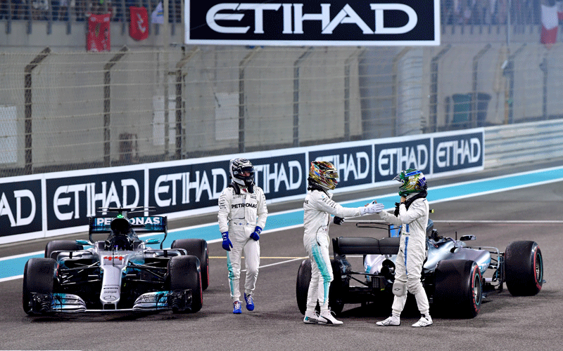 انهى فريق مرسيدس موسم 2017 في القمة بإحراز سائقيه الفنلندي فالتيري بوتاس والبريطاني لويس هاميلتون المركزين الاول والثاني على التوالي في جائزة ابوظبي الكبرى، المرحلة العشرين الاخيرة من بطولة العالم في سباقات الفورمولا واحد، امس على حلبة ياس مارينا.