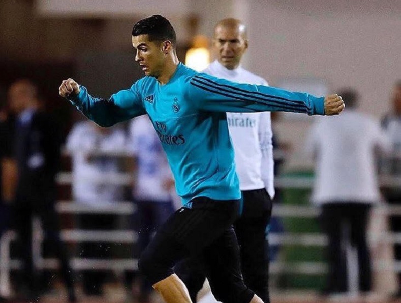نشر لاعب فريق ريال مدريد، البرتغالي كريستيانو رونالدو، أفضل لاعب في العالم لعام 2017 صورة له على حسابه الرسمي في موقع التواصل الاجتماعي انستغرام، خلال تدريبه الأول مع ريال مدريد أمس في أبوظبي والذي أقيم في ملعب الجامعة الامريكية، ووضع اللاعب علامة الإعجاب بتواجده في الامارات بجوار كلمة أبوظبي، ولاقت الصورة التي نشرها اللاعب في وقت متأخر من مساء أمس وظهر فيها أيضا مدرب الفريق، الفرنسي زين الدين زيدان، إعجاب اكثر من مليون ونصف متابع من جمهور اللاعب على الموقع وذلك خلال وقت قليل جدا.