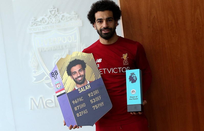توج محمد صلاح رسمياً بلاعب الشهر في الدوري الإنجليزي لشهر نوفمبر الماضي، عقب تألقه مع فريق ليفربول الإنجليزي واحرازه لسبعة أهداف، وأكد الموقع الرسمي لبطولة الدوري الإنجليزي الممتاز أن محمد صلاح، أصبح اول لاعب مصري يفوز بهذه الجائزة، وبعد تتويجه مباشرة استلم اللاعب نموذج لبطاقته الجديدة في لعبة فيفا 2018 لكرة القدم، حيث زادت بطاقة اللاعب إلى الرقم 88، وهي ما تعطي للاعب أمكانيات أكثر في اللعبة الأشهر عالمياً.