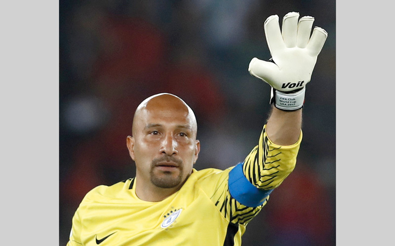حارس باتشوكا المكسيكي بيريز شارك في مونديال الأندية بالإمارات وعمره 44 سنة. أ.ب