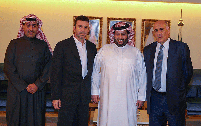 ونشر حساب الهيئة العامة للرياضة صور توقيع خوليو سيزار، لاعب النصر السعودي السابق، برفقة تركي آل الشيخ ورئيس الاتحاد الفلسطيني لكرة القدم جبريل الرجوب.