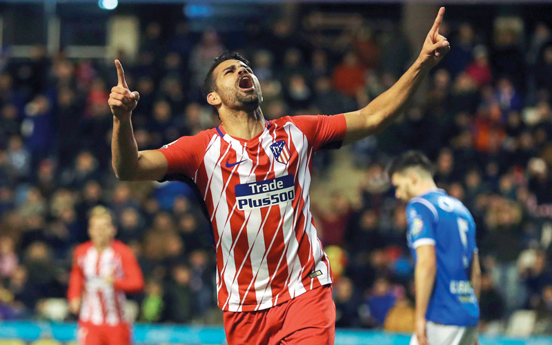 سجّل المهاجم دييغو كوستا هدفاً في اول مباراة يخوضها، بعد عودته الى صفوف أتلتيكو مدريد، خلال فوز الاخير الساحق على لييدا اسبورتيو برباعية نظيفة في ذهاب الدور ربع النهائي من مسابقة كأس إسبانيا أول من أمس.