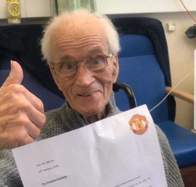 بعث مدرب فريق مانشستر يونايتد، البرتغالي جوزيه مورينيو، رسالة إلى أحد أكبر مشجعي فريق مانشستر يونايتد الإنجليزي ويبلغ من العمر 94 عامًا، ليبلغ له تحياته هو واللاعبين بسبب إخلاصه وحضوره الدائم لمباريات الفريق في كافة البطولات، وظهرت صورة المشجع الكبير في السن وهو يحمل رسالة من المدرب البرتغالي كتب فيها، "نريد أن نشكرك على كل ما تقوم به من أجل دعم وتشجيع الفريق والتواجد الدائم في المباريات، وأردت فقط أن أشكرك على دعمك وتشجيعك للنادي، اتفهم حالياً أنك تمر بوقت صعب ونتمنى ان نساعدك واريدك أن تعرف أنني وفريق العمل بالنادي واللاعبين نفكر فيك".