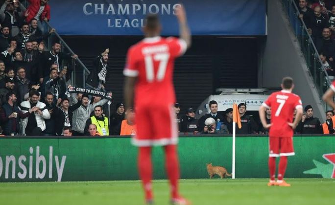 تسببت "قطة" في إيقاف مباراة بايرن ميونخ ومضيفه بيشكتاش التركي في دوري أبطال أوروبا أمس، وذلك بعد أن نجحت القطة في التسلل إلى أرضية ملعب "فودوفون ارينا" في تركيا، الأمر الذي استدعى إيقاف اللعب لفترة محدودة، قبل أن يستكمل الفريقان المباراة التي انتهن بواقع ثلاثة أهداف لهدف واحد.