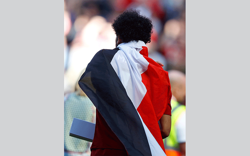 محمد صلاح يتسلم الحذاء الذهبي الانجليزي ويتوشح بالعلم المصري