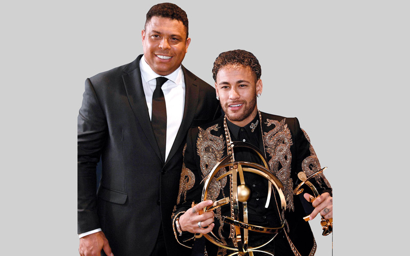 البرازيلي رونالدو سلّم جائزة أفضل لاعب في ملاعب فرنسا إلى مواطنه نيمار. أ.ف.ب