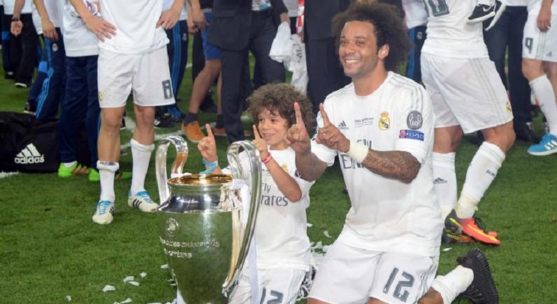 نشر موقع صحيفة ماركا الاسبانية على صفحته بموقع التواصل الاجتماعي تويتر، فيديو لابن لاعب فريق ريال مدريد، البرازيلي مارسيلو، وهو داخل غرفة لاعبي الفريق الأول وقد دخل معهم في تحد رياضي رائع أظهر مهارة اللاعب الصغير في السن بعدما مرر اللاعب الكرة بالرأس مع كافة لاعبي الفريق المتراصين على مقاعد الغرفة من لمسه واحده ثم وجها برأسه إلى أحد الصناديق، في مشهد مهاري رائع وهو ما جعل لاعبي الفريق يرفعون اللاعب على أعناقهم وأبدو سعادتهم خلال الفيديو عقب لمس اللاعب الصغير للكرة وتسديدها في المكان الصحيح.